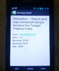 Menurut warga sekitar Pantura, beredar beberapa jenis SMS. Isinya berkisar tentang bakal calon pasangan capres dan cawapres dengan slogan Dwi Tunggal Prabowo-Hatta. Sayangnya nomor-nomor pengirim pesan belum dapat dikonfirmasi.