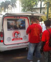 "E-Box ini untuk mengumpulkan aspirasi rakyat kepada presiden yang baru sekaligus menggalang dukungan untuk Jokowi," ujar Ketua Panitia Galih Deska di Bundaran Hotel Indonesia, Jakarta Pusat, Minggu (8/6).