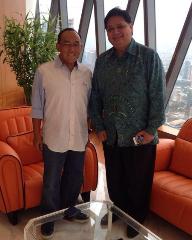 Lewat twitternya, ARB mempublikasikan pertemuannya dengan Sekjen Kosgoro itu di kantornya.