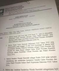 Surat pemberhentian Wanda dikeluarkan DPP PAN dengan nomor: PAN/A/Kpts/KU-SJ/061/VIII/2014. Dalam surat juga dinyatakan bahwa sesuai Rakernas PAN tahun 20014 pasangan calon presiden dan calon wakil presiden yang didukung PAN adalah pasangan Prabowo Subianto dan Hatta Rajasa.