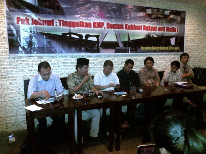 "Sudah saatnya Jokowi menutup peluang terciptanya area abu-abu dalam kabinet dan menghentikan budaya sandiwara, main mata, dan kebohongan atas nama rakyat," kata juru bicara Gerakan Dekrit Rakyat Indonesia, Ray Rangkuti, dalam diskusi bertajuk "Pak Jokowi: Tinggalkan KMP, Bentuk Kabinet Rakyat Anti Mafia!" di Kafe Deli, Sarinah, Jakarta (Senin, 6/10).