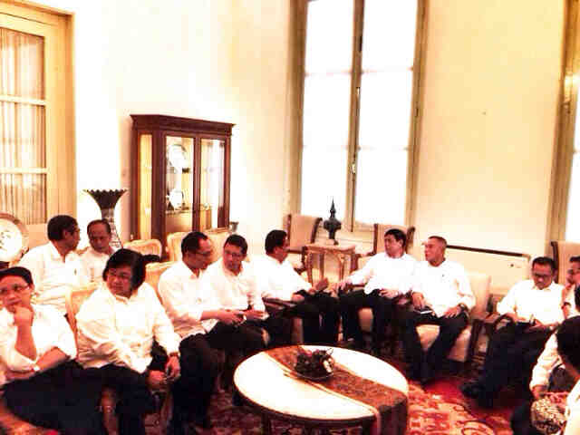"Ini (kemeja putih) pemberian Pak Jokowi. Tadi diambil di sini (Istana) pukul 8," ucap Kepala Badan Pengawas Keuangan dan Pembangunan (BPKP) Wardiasmo di Istana Merdeka, Jalan Medan Merdeka Utara, Minggu (26/10).