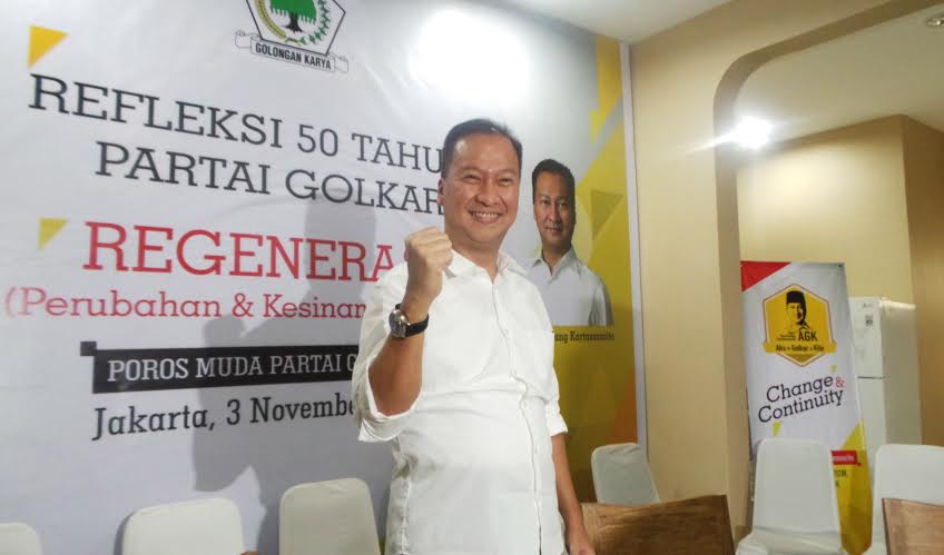 Politikus Golkar, Agus Gumiwang Kartasasmita (AGK) meresmikan posko pemenangan dirinya sebagai Calon Ketua Umum Partai Golkar di Jalan Gunawarman nomor 49, Jakarta Selatan, Senin (3/11).