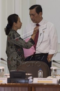 Antara menangkap momen Luhut dan Rini Soemarno berdiri dalam jarak cukup dekat.