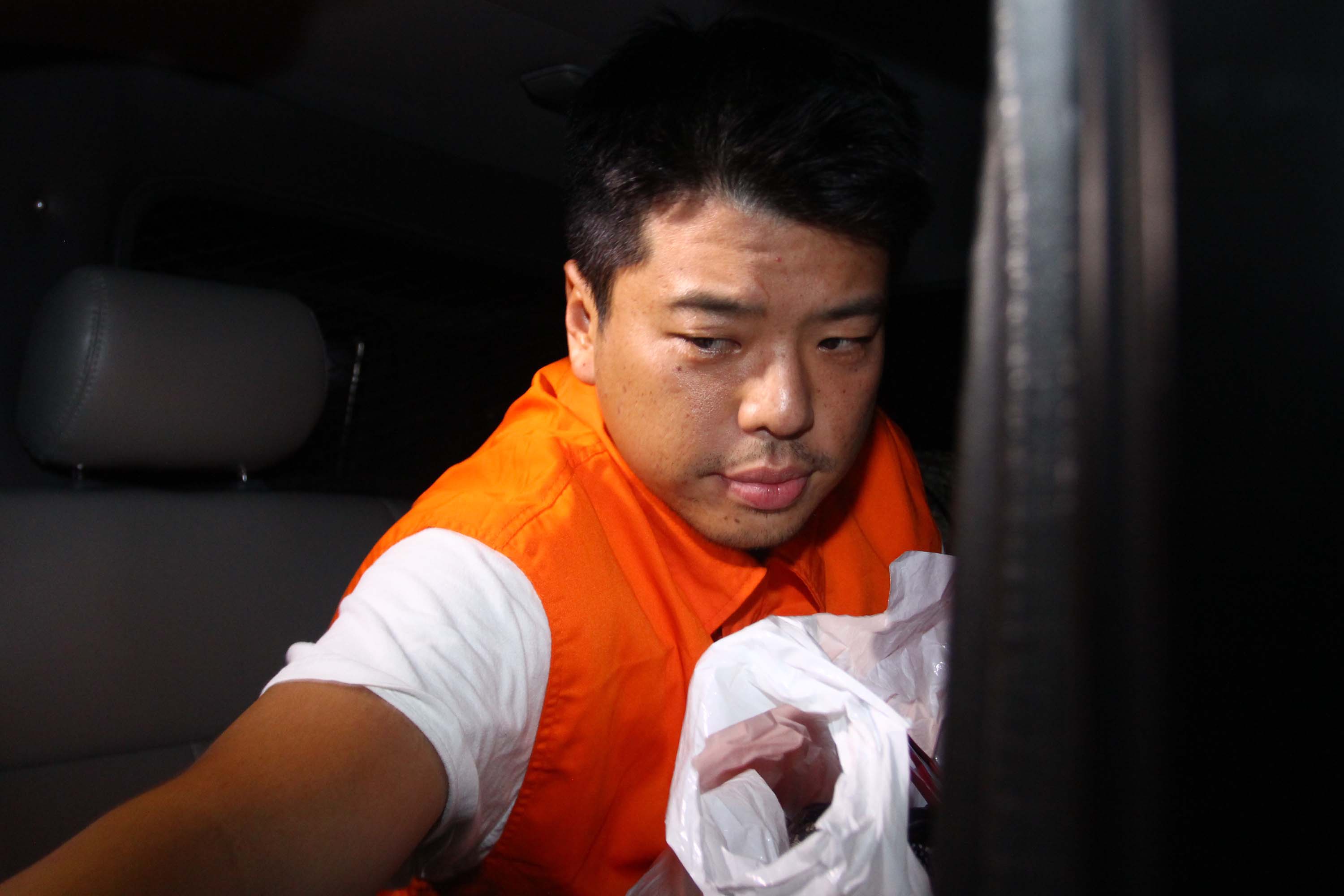 Direktur PT Mitra Maju Sukses (MMS) Andrew Hidayat digiring ke mobil tahanan usai menjalai pemeriksaan digedung Komisi Pemberantasn Korupsi (KPK), Jakarta, Sabtu (11/4) dinihari. Andrew Hidayat ditangkap penyidik KPK bersama barang bukti uang 90 ribu dolar AS, di sebuah Hotel di kawasan Senayan Jakarta, Kamis (9/4) malam, bersamaan dengan Operasi Tangkap Tangan (OTT) penyidik KPK terhadap anggota DPR Fraksi PDIP yang juga mantan Bupati Tanah Laut, Kalimantan Selatan Adriansyah.