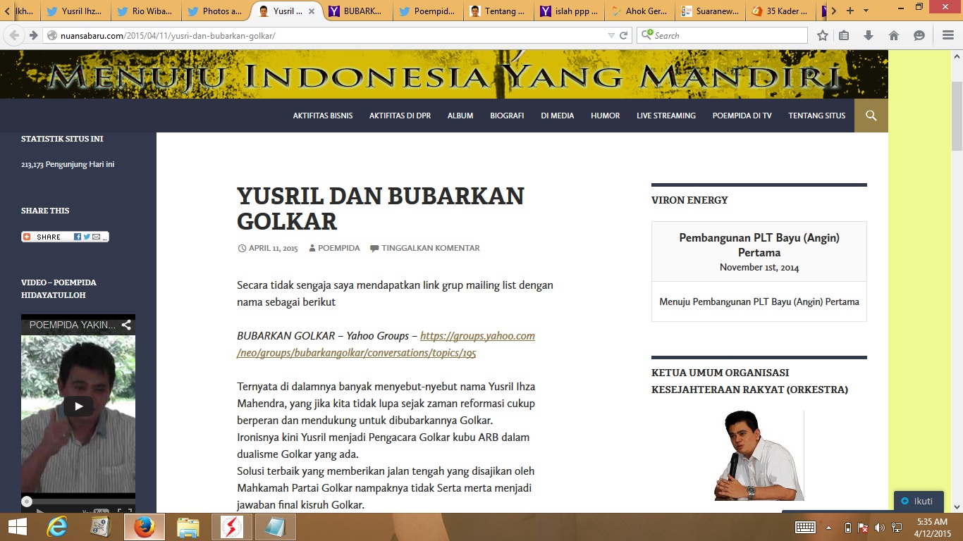 YUSRIL dan BUBARKAN GOLKARSecara tidak sengaja saya mendapatkan link grup mailing list dengan nama sebagai berikut