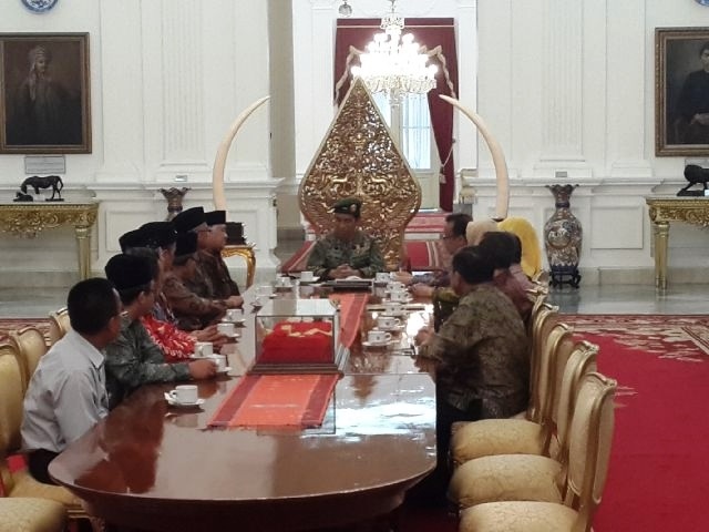 Catatan Ki Wibowo yang dikenal sebagai pengamat spriritual, selain mengenakan seragam militer, Jokowi tidak mencopot baret hijaunya dalam pertemuan. Selain itu, Jokowi duduk di kursi dengan latar belakang Gunungan dilengkapi dua gading di sisi kiri kanannya.