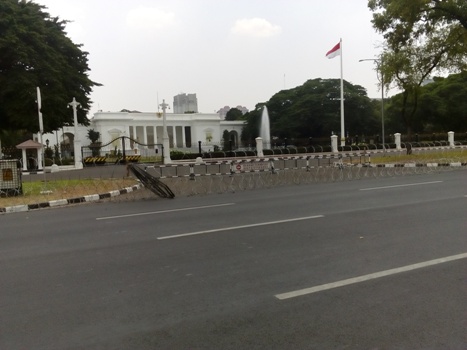 Selain itu terpantau sepanjang jalan dari depan Istana Negara telah dipagari kawat berduri setinggi satu meter. Ratusan aparat kepolisian juga tengah siaga di sekitar lokasi lengkap dengan kendaraan taktis seperti baracuda dan water canon.