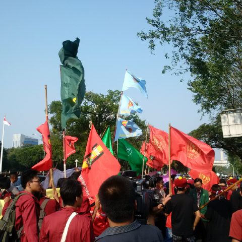 "Tidak hanya itu, kami juga mendesak Jokowi-JK mundur karena gagal mewujudkan kedaulatan bangsa dalam bidang ekonomi, politik, dan sosial budaya. Turunkan Jokowi-JK! Turunkan harga! Jangan ada PHK dan usir pengusah yang tidak nasionalis!" tandasnya.