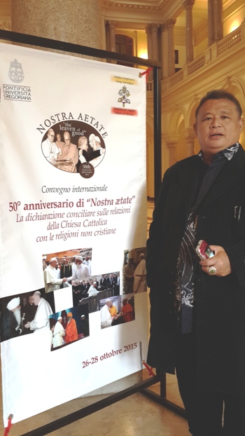 Hermawi, Ketua Forum Komunikasi Alumni Perhimpunan Mahasiswa Katolik Indonesia (Forkoma PMKRI) dan Putu, ‎Ketua Gerakan Ekayastra Unmada atau Semangat Satu Bangsa, berkunjung ke Italia untuk menghadiri Konferensi Internasional di Universitas Gregoriana dalam perayaan peringatan 50 tahun diluncurkannya dokumen Nostra Aetate oleh mendiang Paus Paulus VI.