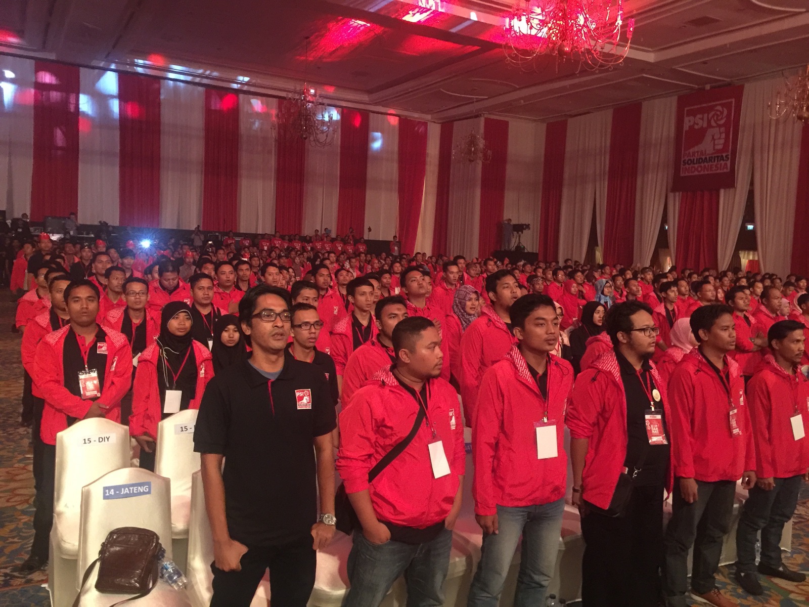 Ribuan kader Partai Solidaritas Indonesia (PSI) menghadiri acara Kopi Darat Nasional (Kopdarna) di Jakarta Convention Center (JCC), Jakarta, Senin (16/11).Â