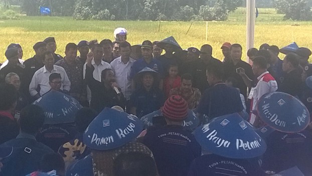 "Perjalanan hidup saya di politik, ini dalam sejarah pertama pelantilan di tengah sawah," ujar Surya Paloh di Lampung Tengah, Minggu (10/4).