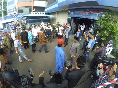 Teguh bersama rombongan berjalan kaki sejauh 300 meter dari titik kumpul ke kantor DPD Demokrat. Alunan musik marawis dan lantunan shalawatan mengiringi perjalanan mereka. Terik matahari tak menurunkan semangat rombongan. Aksi ini menyedot perhatian para pengguna jalan dan warga yang tengah bekerja di gedung-gedung perkantoran yang dilewati iring-iringan rombongan. Para warga nampak mengabadikan kejadian ini.