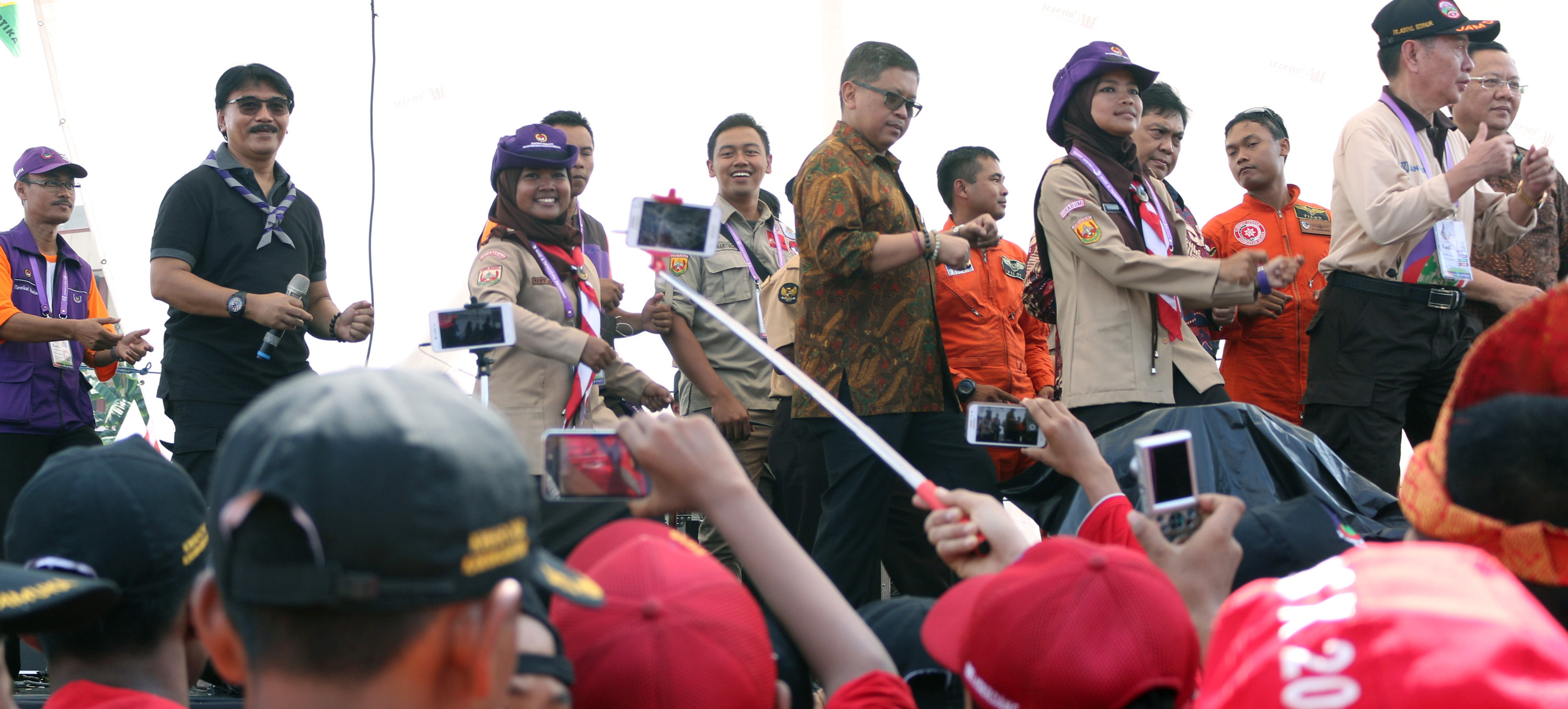 Peserta jambore nasional tak melepaskan momen itu berlalu begitu saja. Mereka berebut meminta foto bersama atau bahkan selfie bersama Hasto.