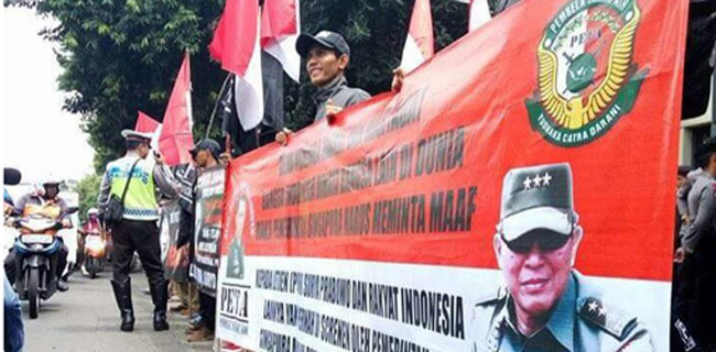 Dalam orasinya, perwakilan pejuang pembela tanah air itu menuntut pemerintah Singapura segera meminta maaf kepada seluruh rakyat Indonesia, khususnya WNI yang pernah discreening oleh pemerintah Singapura termasuk di dalamnya Letnan Jenderal (purn) Suryo Prabowo.
