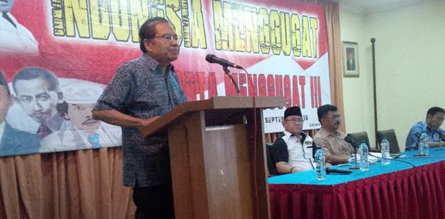 "Itu yang dilawan Bung Karno, sistem yang bikin miskin pribumi. Jadi ini sudah benar (tema diskusi) 'Jakarta Menggugat'. Malah seharunya 'Betawi Menggugat' karena banyak tokoh Betawi di sini," seru Rizal disambut teriakan setuju dari hadirin.