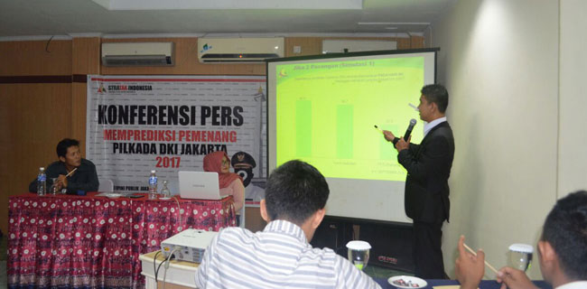 Direktur Riset Stratak Indonesia Mohammad Romdhoni menambahkan tidak ada calon dominan yang bisa diprediksi memenangkan Pilgub DKI. Hasil riset opini publik yang dilakukannya September ini menemukan bahwa Ahok bukanlah calon dominan dan mudah dikalahkan.