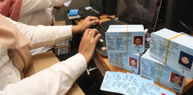 Petugas saat melakukan pencetakan E-KTP milik Warga di Dinas Kependudukan Catatan Sipil Kota Tangerang, Banten, Kamis (29/9). Kementerian Dalam Negeri (Kemendagri) memperpanjang batas waktu perekaman KTP elektronik (e-KTP). Jika sebelumnya batas waktu diberikan sampai 30 September 2016, kini diperpanjang hingga pertengahan 2017. Masyarakat tetap diimbau segera melakukan perekaman data. Randy Tri Kurniawan/RM