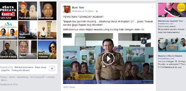 Buni Yani. Kemarin, Komunitas Advokat Muda Ahok-Djarot (Kotak Adja) melaporkan Buni Yani lantaran diduga salah mentafsirkan isi pernyatan Gubernur Jakarta Ahok dalam rekaman video sebuah acara di Kepulauan Seribu, sehingga menimbulkan keresahan dan kebencian di tengah masyarakat. Kotak Adja melaporkan akun Facebook