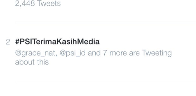 Pengurus dan kader PSI seluruh Indonesia juga menyampaikan rasa terima kasih di jejaring sosial. Tanda pagar (tagar) #PSITerimaKasihMedia menjadi trending topic selama lebih dari empat jam di jejaring Twitter pada hari ini (Minggu, 9/10).
