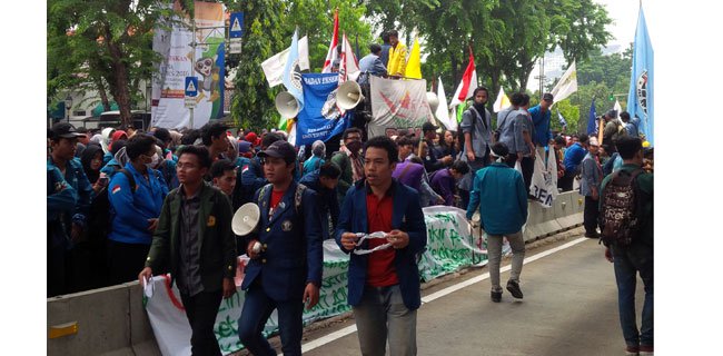 Mahasiswa yang berasal dari Sumatera bagian utara, Sumatra bagian selatan, Jabodetabek, Banten, Jawa Barat, Jawa Tengah-DIY, Jawa Timur, Kalimantan Tengah, Timur, dan Barat, Bali, Nusa Tenggara dan Papua menyampaikan lima tuntutan kepada pemerintahan Jokowi-JK.