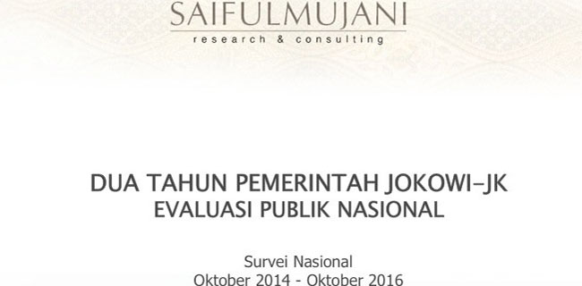 Demikian temuan Saiful Mujani Research and Consulting (SMRC) lewat survei bertajuk "Dua Tahun Pemerintah Jokowi-JK: Evaluasi Publik Nasional" yang dirilis di Sari Pan Pasific, Jakarta, Minggu (23/10).