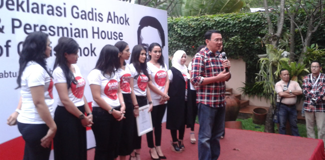 Wajah Ahok tampak sumringah saat diperkenalkan kepada sembilan perempuan penggagas Gadis Ahok. Sebab dari sembilan perempuan Gadis Ahok ini akan menyebar ke sejumlah wilayah di Jakarta untuk mensosialisasikan program-program Ahok dan pasangannya Djarot Saiful Hidayat dalam lima tahun kedepan memimpin DKI.
