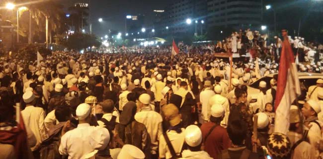 nggak ada air, silakan tayamum. Kita salat Jamaah Jamak Takhir. Kita buat shaf ke arah Slipi," teriak orator menggunakan pengeras suara.