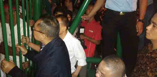 Ketua MPR RI Zulkifli Hasan bersama Anggota Komisi III DPR RI, Sufmi Dasco Ahmad, Aboebakar Al Habsyi dan Muchlisin menemui ribuan demonstran yang tergabung Aksi Bela Islam di Gerbang Depan Komplek Parlemen, Senayan, Jakarta, Sabtu dinihari (5/11).