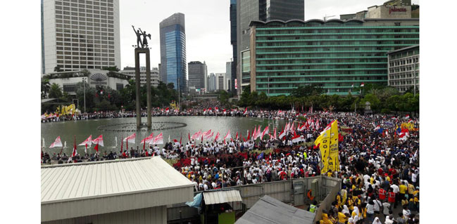 Wahana Lingkungan Hidup Indonesia (Walhi) Jakarta sebagai salah satu lembaga pencetus lahir nya Car Free Day di DKI Jakarta, kecewa area CFD beralih fungsi jadi panggung politik, hari ini (Minggu, 3/12).