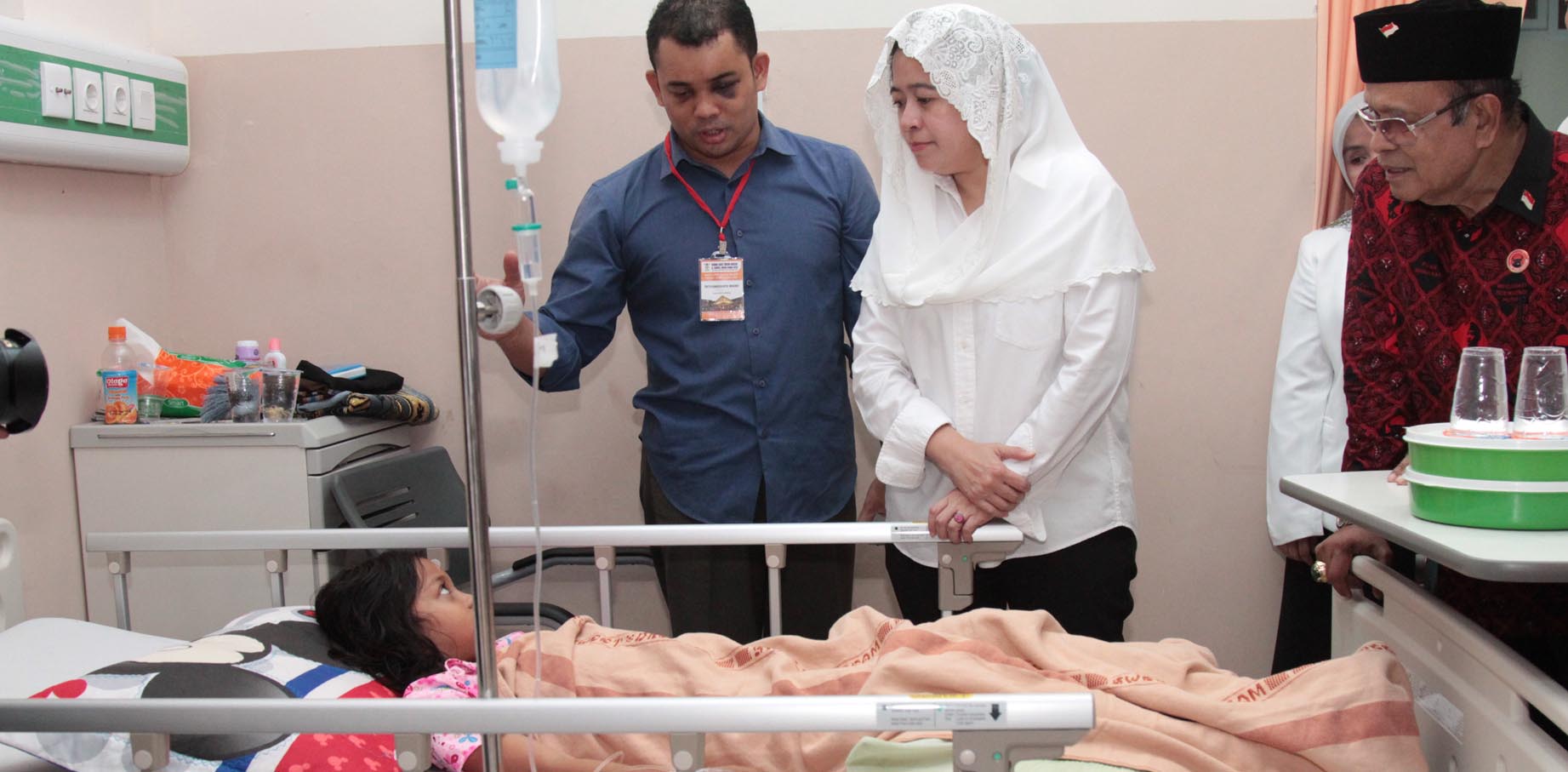 Selain melihat perkembangan terkini perawatan medis terhadap para korban, Menko PMK juga menyerahkan sejumlah bantuan antara lain sarung, tas, buku bacaan, dan sebagainya.