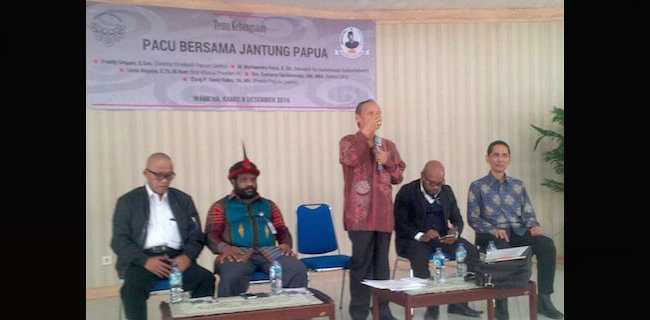 Staf Khusus Presiden RI untuk urusan Papua, Lenis Kogoya, pendiri Papuan Center Elang P. Oasis Rubra, dan Direktur Papuan Center Franky Umpain, juga menjadi pembicara dalam kegiatan itu.