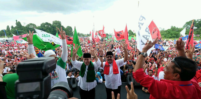 "Alhamdulillah, meskipun sempat tersendat, antusisme pendukung cukup baik. Ini hampir 20 ribu orang," kata Rano Karno kepada wartawan di Lapangan Boru, Kota Serang, Minggu (8/1).