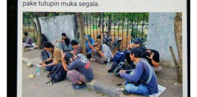 Foto itu anda lengkapi dengan keterangan foto sebagi berikut "Tim cyber/buzzer penista agama yang malu dan takut ketahuan tampangnya untuk dipublikasikan, turut hadir dipersidangan hari ini. Udah seperti PSK asal China kelakuan mereka, pake tutupin muka segala".