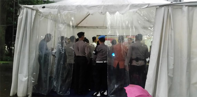 Sejumlah pasukan keamanan juga nampak tengah melakukan apel dan strategi pengamanan di dalam tenda yang disediakan.