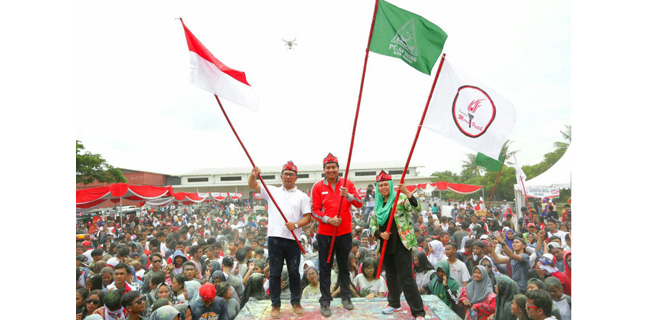 "Siap membela Pancasila, Siap membela NKRI," kata Maruarar di hadapan ribuan warga Subang.
