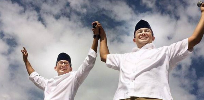RMOLJakarta, Sandiaga tiba lebih awal. Sekitar 15 menit kemudian, calon gubernur Anies Baswedan tiba.