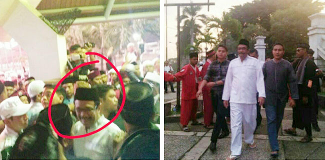 Menggunakan koko putih berpeci hitam, Djarot justru tak gentar untuk melangkah. Dia berjalan agak cepat, namun tetap tersenyum sambil menangkupkan tangannya ke dada ke arah para pencibirnya.