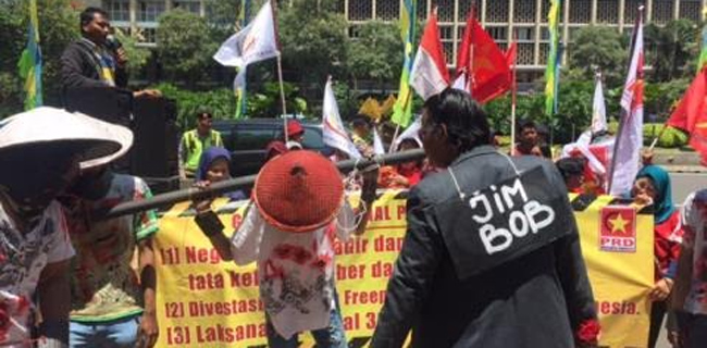 Massa aksi sempat melakukan aksi teatrikan ketertindasan rakyat oleh pemilik modal seperti PT Freeport yang menyengsarakan rakyat Indonesia.
