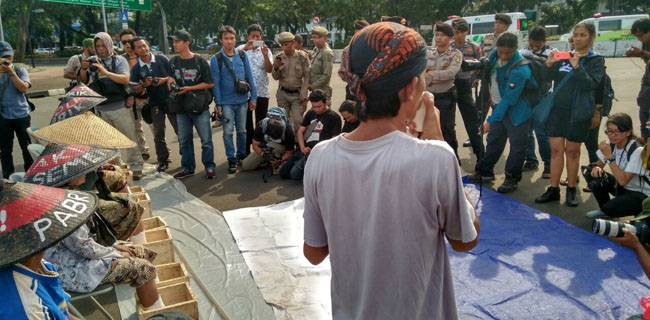 "Walaupun sudah ada Putusan Pengadilan yang berkekuatan Hukum Tetap dan Perintah Presiden untuk moratorium Izin, nyatanya pada 23 Februari 2017 Gubernur Jawa Tengah Ganjar Pranowo kembali mengeluarkan Izin Lingkungan, Gubernur mengabaikan Perintah Pengadilan dan Perintah Presiden Jokowi," demikian ujar orator tersebut.