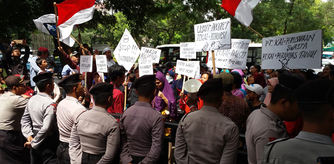 Dalam orasinya, mereka menilai terjadi maladministrasi pada proyek pembangunan jalur kereta api Bandara Soekarno Hatta yang tengah dikerjakan oleh PT Kereta Api Indonesia (KAI).