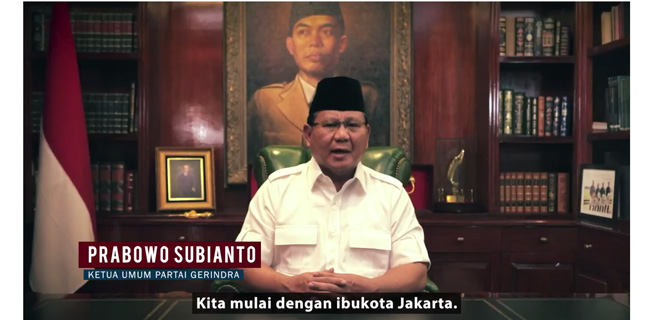 "Saya akan menjadi orang pertama yang akan menurunkannya jika mereka tidak merawat kebhinnekaan Jakarta. Saya akan menjadi orang pertama yang akan melawannya jika mereka tidak setia pada konstitusi UUD 45, NKRI ataupun Pancasila," kata Prabowo dalam video berdurasi 4 menit 15 detik tersebut.