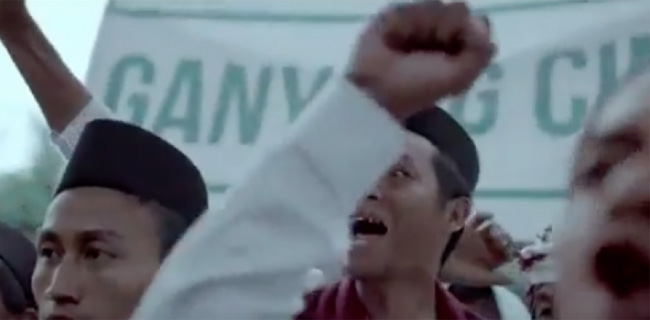 Segmen paling kontroversial dari video itu berisi adegan sekelompok orang berpakaian khas muslim berteriak-teriak marah dengan latar belakang spanduk bertuliskan "Ganyang Cina".