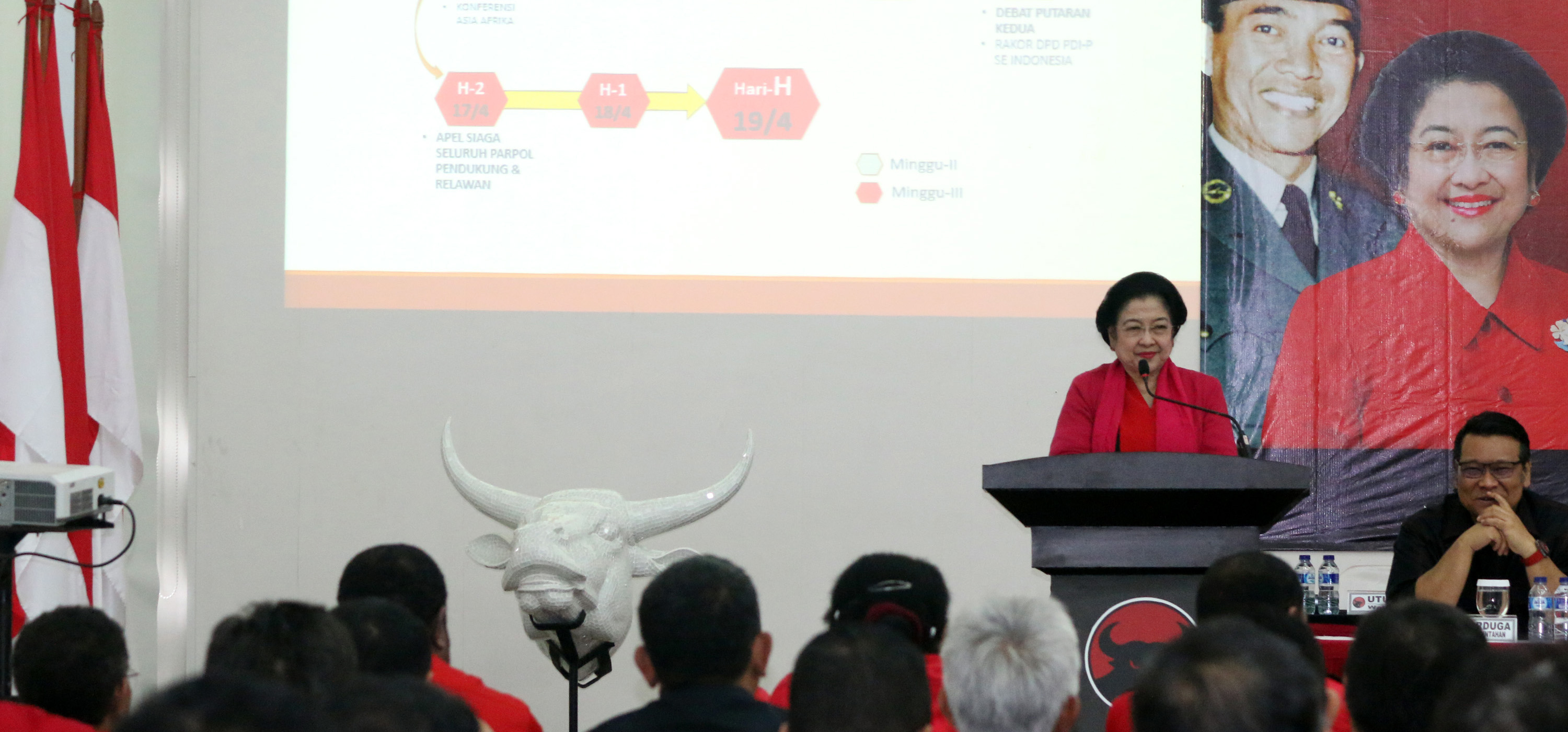 Demikian disampaikan kata Ketua Umum DPP PDI Perjuangan, Megawati Soekarnoputri, saat memberikan pengarahan pada rapat koordinasi (rakor) dengan pengurus DPD PDIP se-Indonesia di kantor DPP PDI Perjuangan, Menteng, Jakarta Pusat, Rabu (12/4).