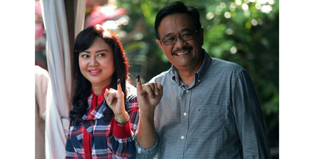 Ditemani istrinya, Heppy Farida, Djarot mencoblos di TPS 08 Kuningan Timur, Jakarta Selatan tepat pukul 09.00 WIB.