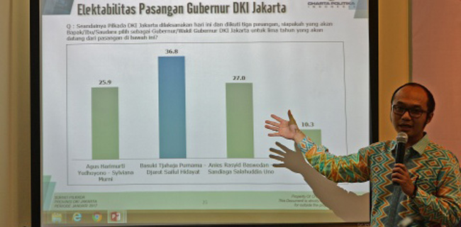 Kenyatannya, jika merujuk pada hasil hitung cepat lembaga-lembaga survei dan Situng KPU, selisih Anies dan Ahok sangat besar di atas 15 persen atau berkali-kali lipat di atas margin of error.