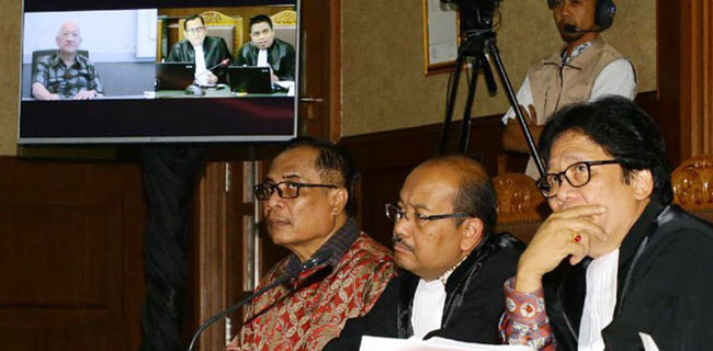 Ada tiga layar yang ditaruh di dalam ruang sidang. Dua layar dipasang di belakang majelis hakim. Satu lagi diplot di depan majelis hakim. Ketua Majelis Hakim Jhon Halasan Butarbutar membuka persidangan pukul 10 pagi. Tannos mendapat giliran pertama bersaksi untuk terdakwa Irman dan Sugiharto. Di layar, tampak Tannos yang berkemeja lengan panjang hitam motif biru, duduk di sebuah kursi hitam. "Saya tinggal di Singapura sejak Maret 2012 Yang Mulia," ungkap Tannos saat ditanya Hakim John. Pun begitu, saat KPK melakukan penyidikan. Tannos diperiksa di Negeri Singa.