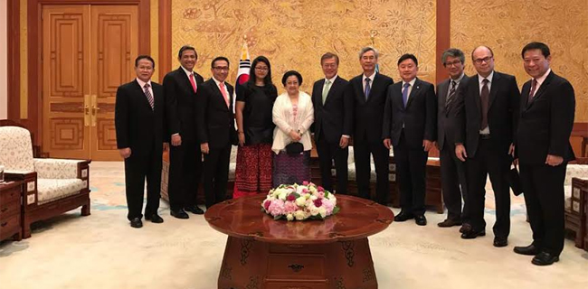 Megawati atas nama pribadi menyampaikan selamat kepada Moon yang terpilih sebagai presiden pada tanggal 10 Mei 2017 yang lalu. Dalam pertemuan yang berlangsung selama satu jam tersebut, Moon menyampaikan banyak harapan kepada Megawati maupun kepada Indonesia, termasuk kemungkinan Megawati untuk mengambil peran kembali dalam proses reunifikasi dua Korea.