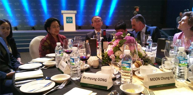 Megawati bersama mantan Presiden Portugal Anibal Cavao Silva, mantan Perdana Menteri Republik Korea Lee Hong-koo dan Han Seong-soo, serta mantan Presiden Mongolia Ponsalmea Ochirbat di Forum Jeju akan berbagi pengalaman dalam memimpin.