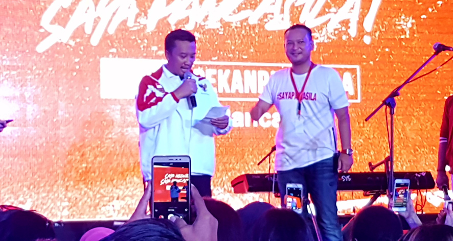 Sesaat acara dibuka, ribuan peserta yang hadir maupun pengunjung mal Citos dengan kompak dan penuh semangat mengumandangkan lagu Indonesia Raya, Indonesia Pusaka dan Garuda Pancasila. Dipimpin musisi Addie MS, mereka turut menyanyi penuh khidmat dengan mengepalkan tangan ke atas. Sebagian tak lupa mengabadikan momen itu.